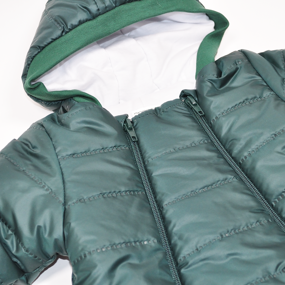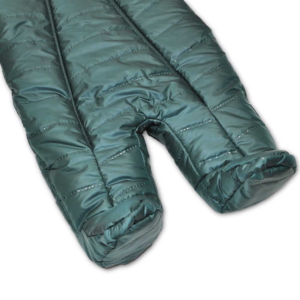 Šiltas butelio žalumo spalvos neperpučiamas kombinezonas kūdikiui.