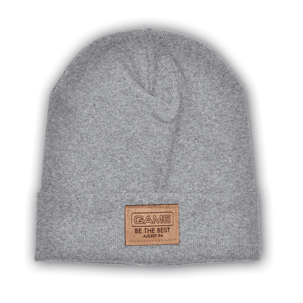 Pilkos spalvos dvigubo švelnaus ir elastingo trikotažo kepurė berniukams.