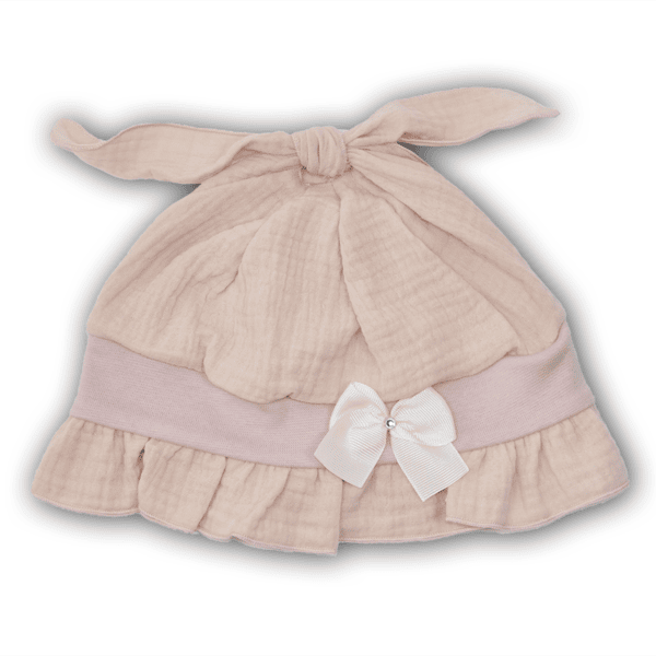 Plona ir švelni muslino medvilnės vasarinė kepurė mergaitei. Aplink yra prisiūta elastinga trikotažinė juostelė, kurios pagalba kepurė gražiai priglus ir laikysis ant galvos.