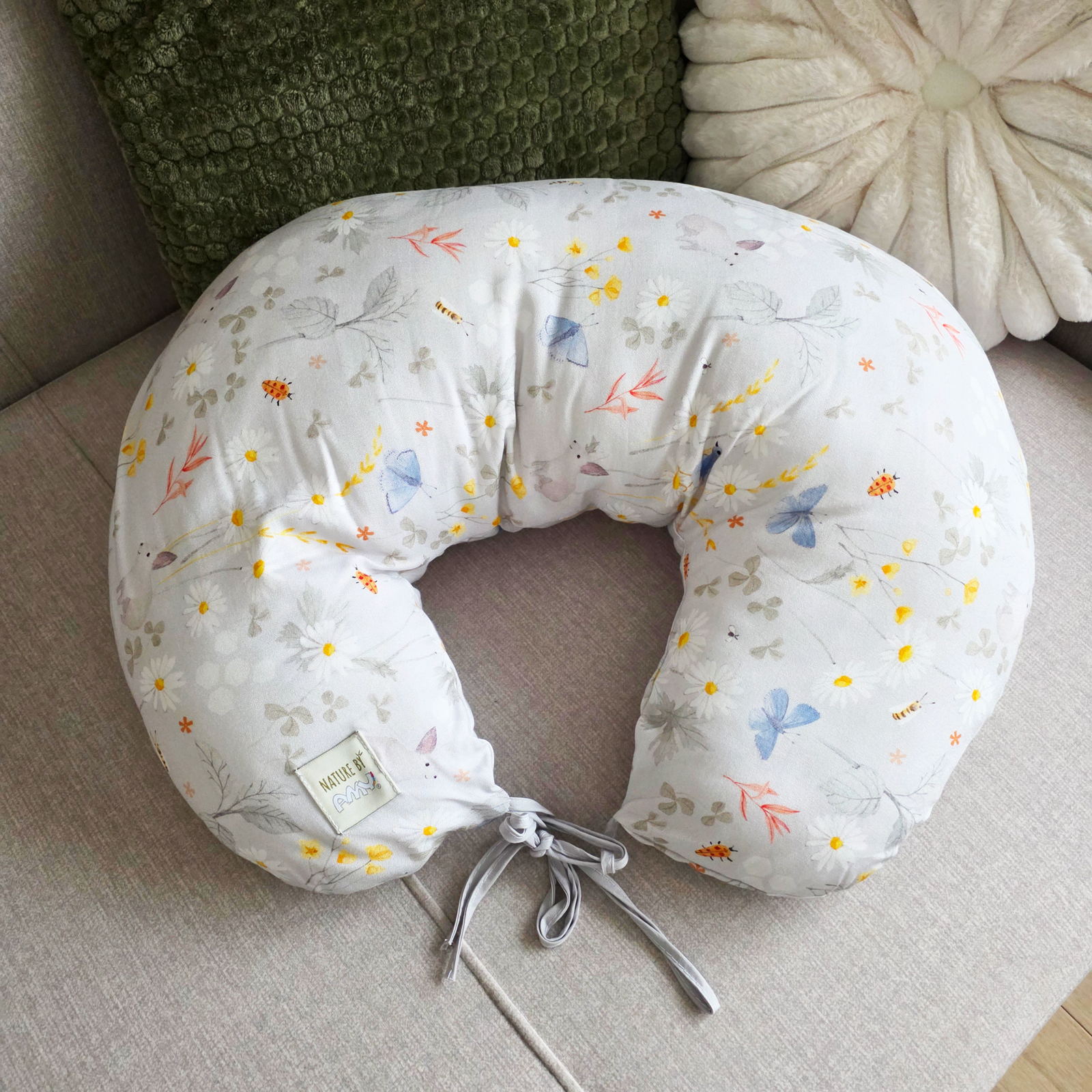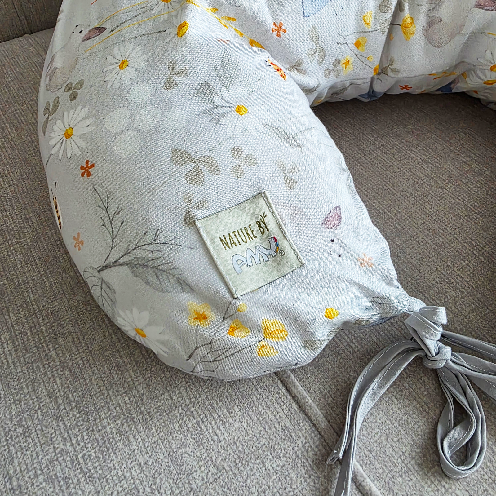 Maitinimo pagalvė, kurios pagalba patogiau ir lengviau galėsite pamaitinti kūdikį. Bambuko pluošto užvalkalas pasižymi išskirtiniu švelnumu ir minkštumu, yra antialerginis, antibakterinis, pasižymi termoreguliacinėmis savybėmis. Surišus pagalvės virveles, galima naudoti kaip gultuką kūdikiui. Pagalvės užvalkalas užsegamas užtrauktuku, dėl to esant poreikiui galima nuimti ir išskalbti. Išmatavimai: 110cm. DOVANA – medvilninis didelis „Nature by AMY” krepšys!