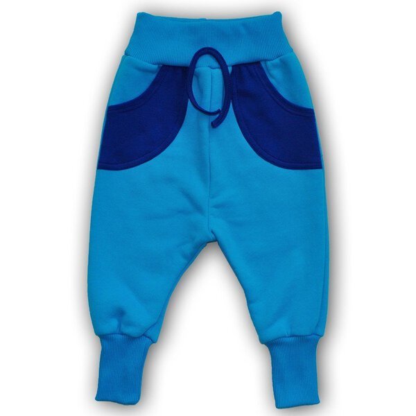 Mėynos stilingos pašiltinto trikotažo kelnės.
