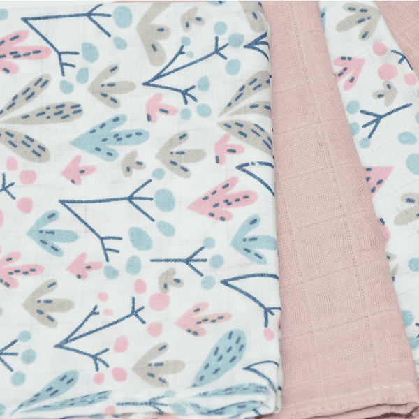 Muslino merliukai kūdikiams 5vnt rausva pieva 40x40cm