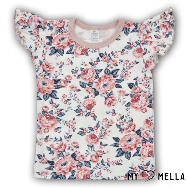 Gėlėta vasarinė trikotažinė palaidinė mergaitėms – praktiškas ir patogus drabužis kasdieniam dėvėjimui. Pagaminta iš minkšto trikotažo, palaidinė maloni liesti, nevaržo judesių ir tinka jautriai vaiko odai.