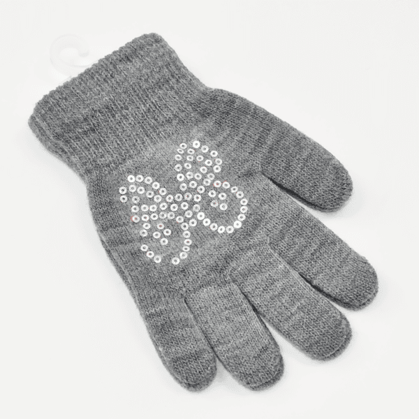 Viengubo nestoro mezgimo pirštinės mergaitėms puoštos blizgia aplikacija.