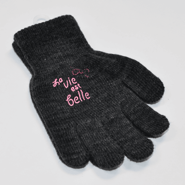 Viengubo plonesnio mezgimo pirštuotos vaikiškos pirštinės.