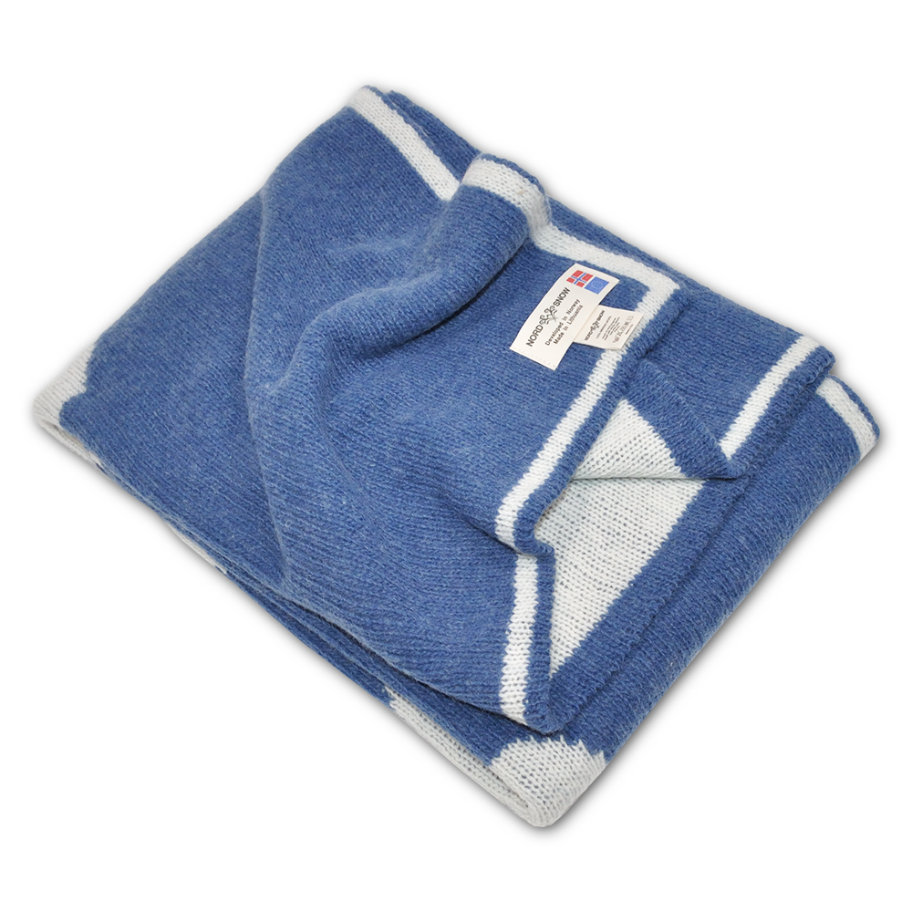 Mėlynas dvigubo mezgimo merino vilnos pledas kūdikiui