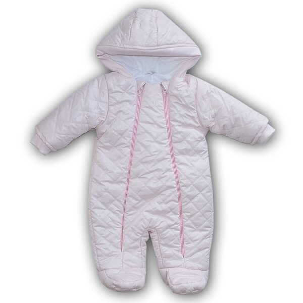Šiltas pilkos (sidabrinės) spalvos neperpučiamas kombinezonas kūdikiui.