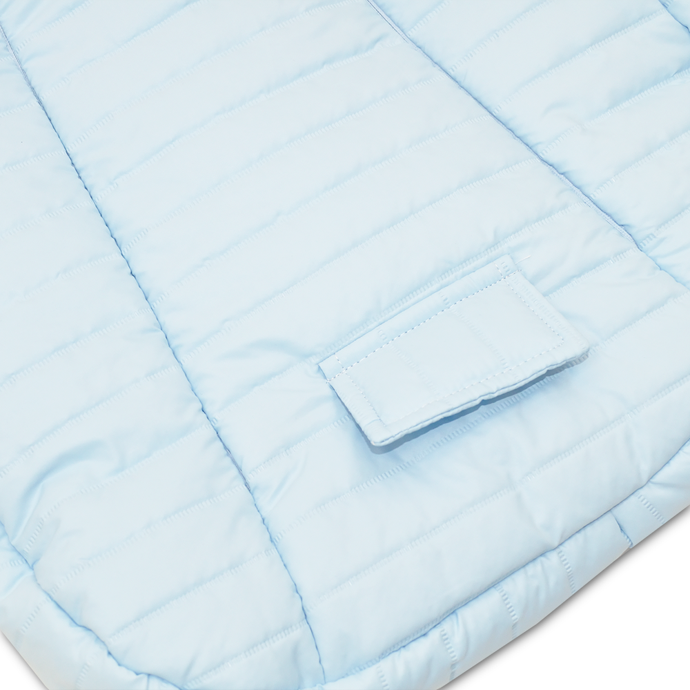 Melsvos spalvos šiltas miegmaišis kūdikiui.