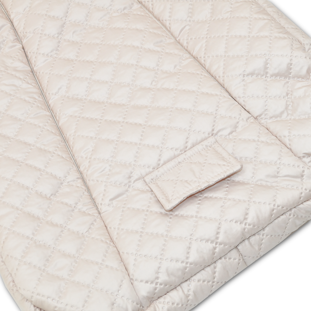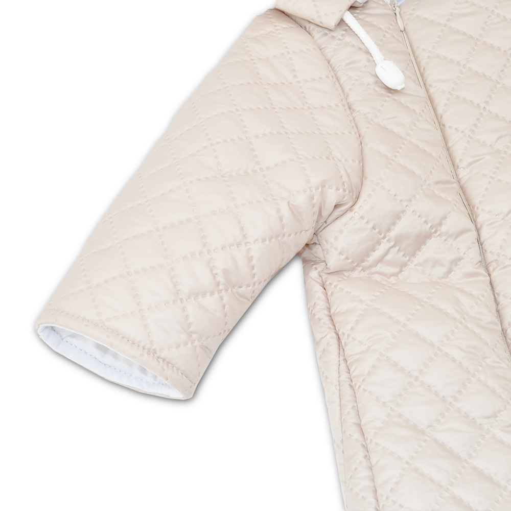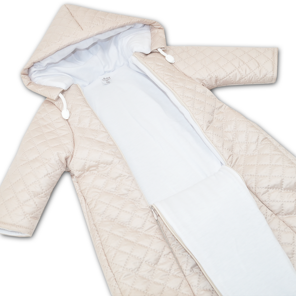 Smėlio spalvos šiltas miegmaišis kūdikiui.