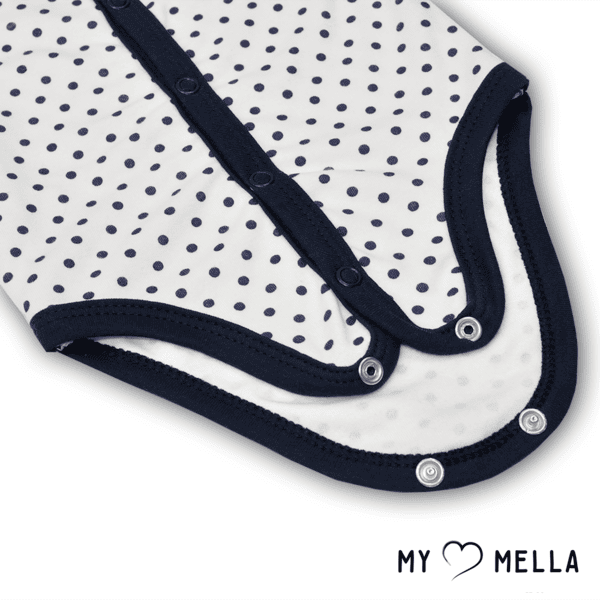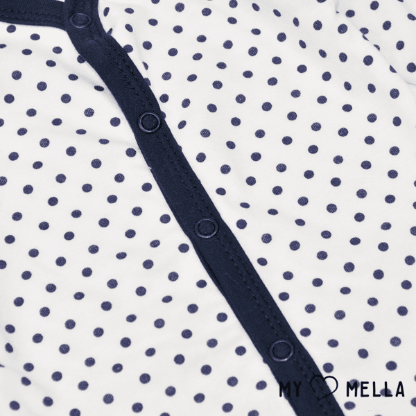 Taškuotas priekyje susegamas smėlinukas kūdikiui.